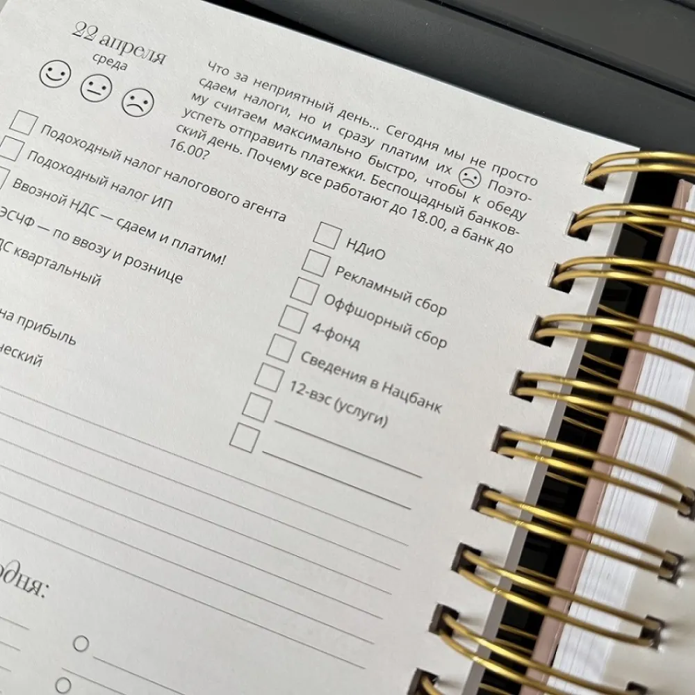 На каждой странице этого ежедневника содержатся напоминалки о сроках сдачи налогов, статистических отчетов, полезная, интересная информация и веселые заметки, которые поймут только бухгалтеры.